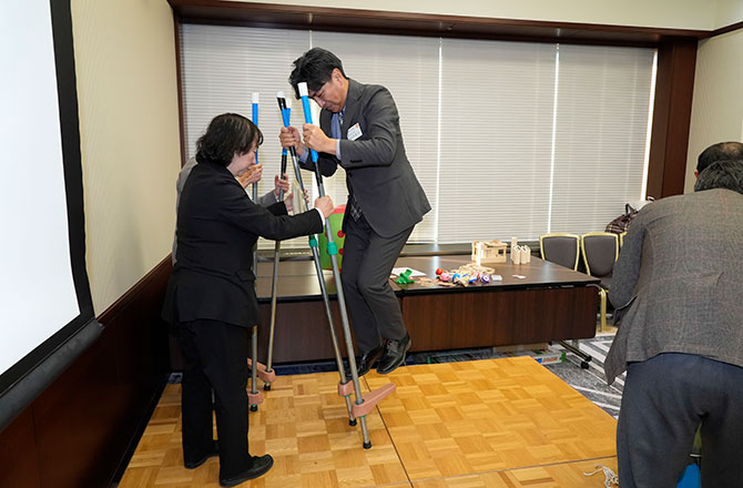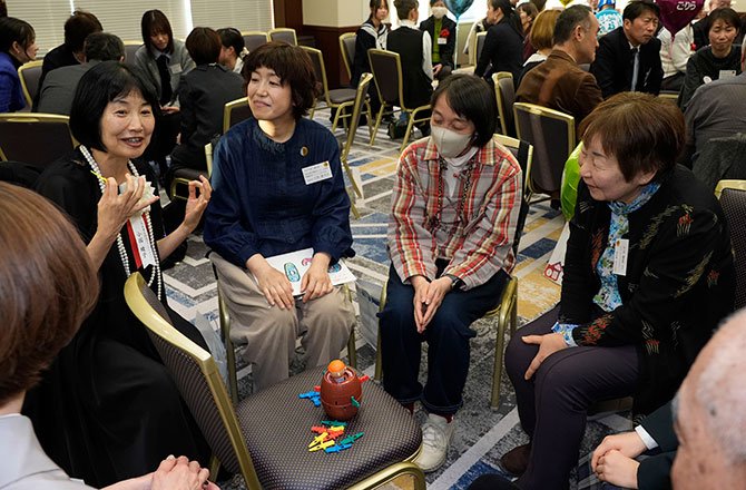 ランダムに分かれたグループで「やりたいこと」を決め、その場ですぐに実行するフリータイムを設けました。和気あいあいとおしゃべりを楽しんだり、昔懐かしい昭和のおもちゃで遊んだりと、会場は終始笑顔あふれるひとときとなりました。