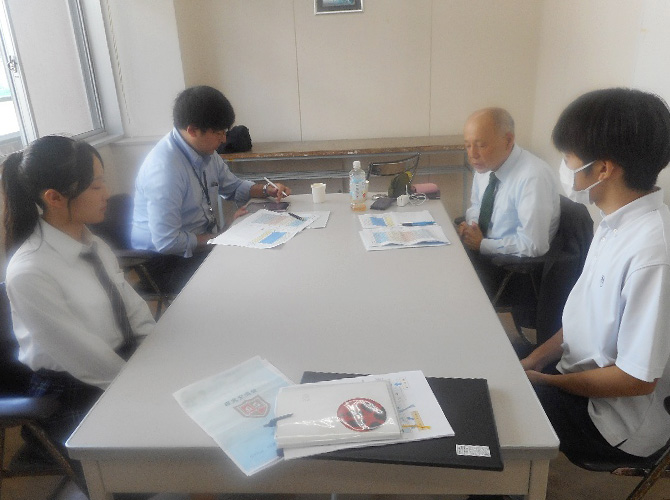 〔生徒に生成AIの活用について詳しくインタビューしている場面〕
