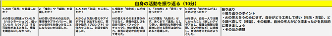 • ・チェックリストによる振り返り、記述による振り返り(AIの出力の見方・AIに対する指示の工夫・自己の思考の深まりという観点を強調)