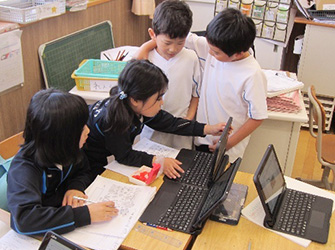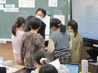 • ・玉川大学の久保田善彦教授を招聘し、公開授業研究を行った。【1年:総合的な学習、2年:総合的な学習、3年:算数、4年:国語、5年:外国語、6年:理科】授業後には全体指導と研究協議を行い、自己選択と自己決定を取り入れた授業づくりの重要性や、ICT機器の効果的な活用方法について再度ご指導いただいた。